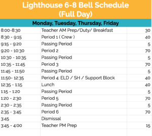 Lighthouse 6-8 Regular Bell Schedule