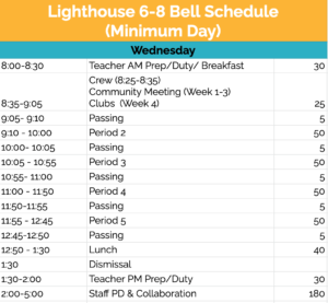 Lighthouse 6-8 Wednesday Bell Schedule