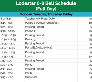 Regular Lodestar 6-8 Bell Schedule