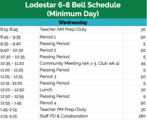 Wednesday Lodestar 6-8 Bell Schedule